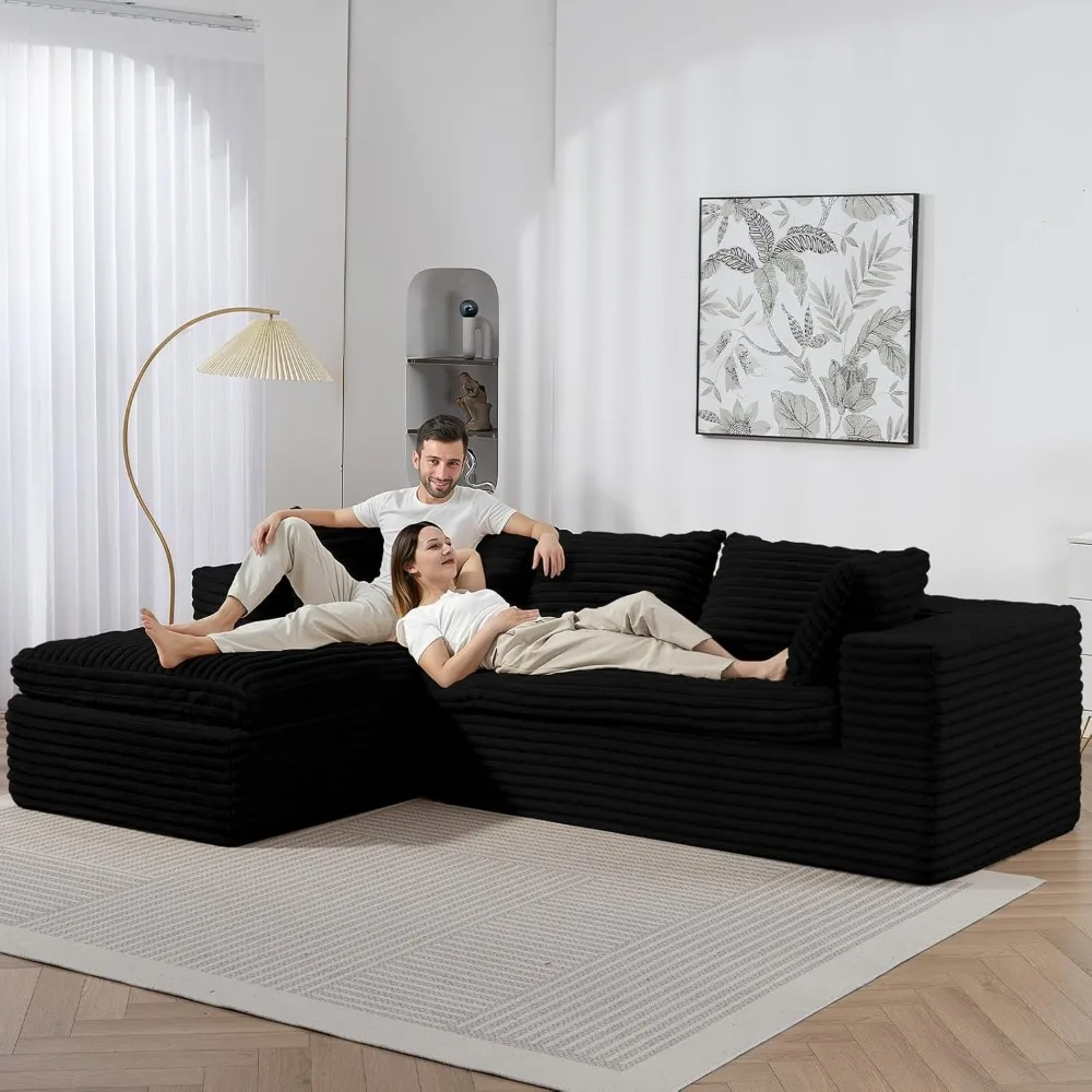 107'' Cloud Modular Sectional Sofa, No-Assembly Boneless L-Shape Couch with Chaise & Cup Holder, Soft Corduroy Left-Facing