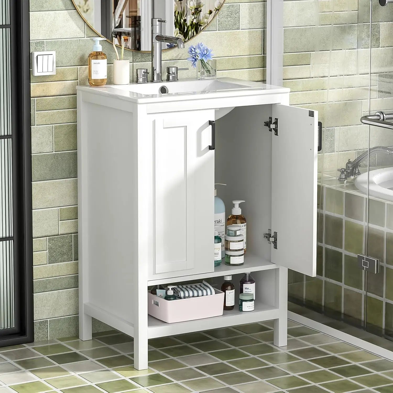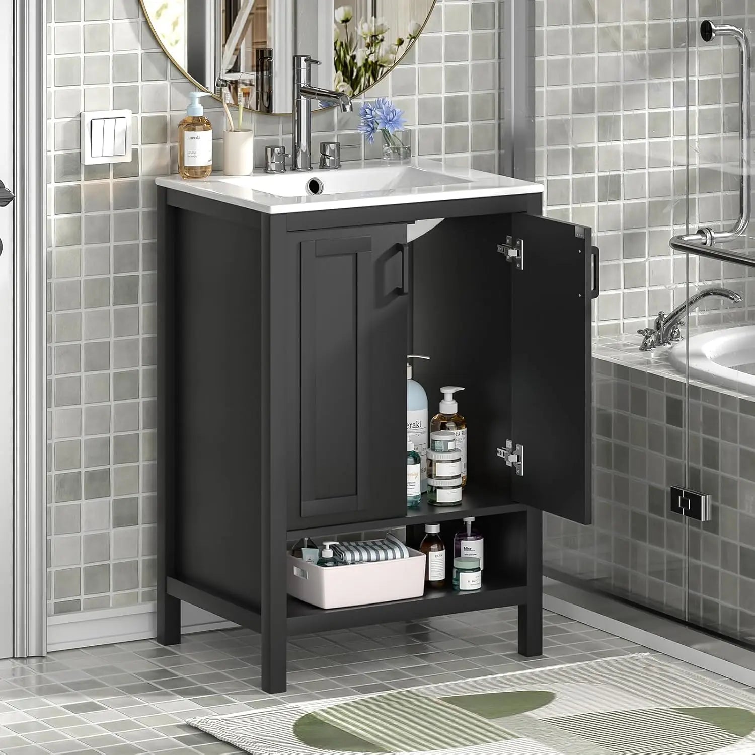 - Easy Installation and Modern Appeal: Designed for straightforward assembly, this vanity comes with all necessary hardware and instructions. Its compact 24" size fits seamlessly into small or medium-sized bathrooms, making it ideal for apartments, guest bathrooms, or modern home upgrades. (Note: Faucet not included.)
