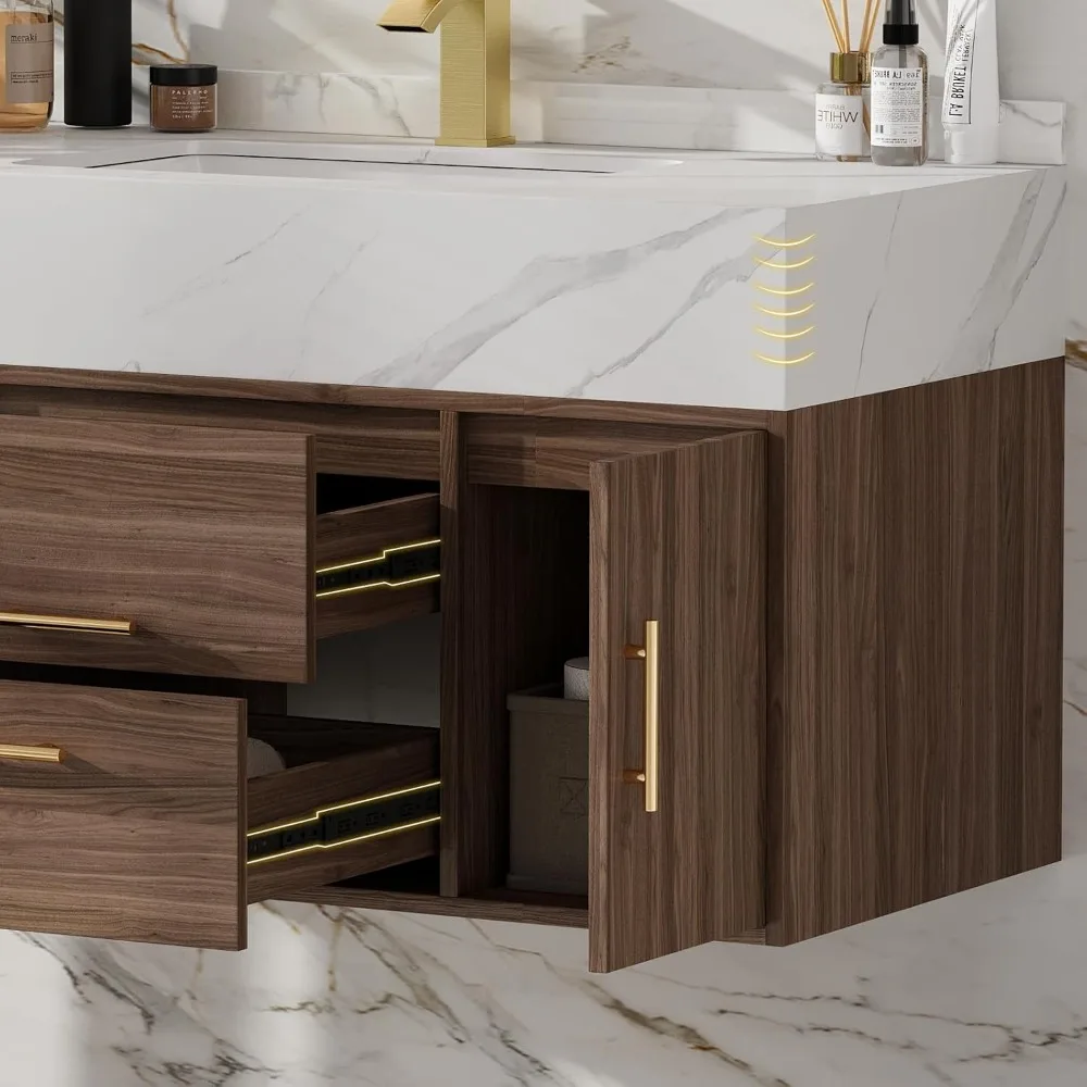 - Ceramic Undermount Sink – floating vanity bathroom with seamless integration for a sleek look, with a smooth, stain-resistant surface for effortless maintenance