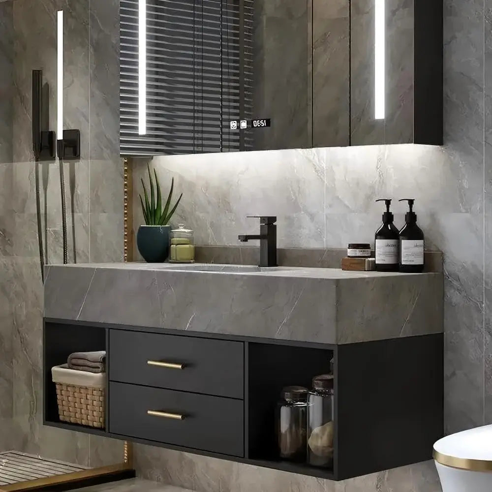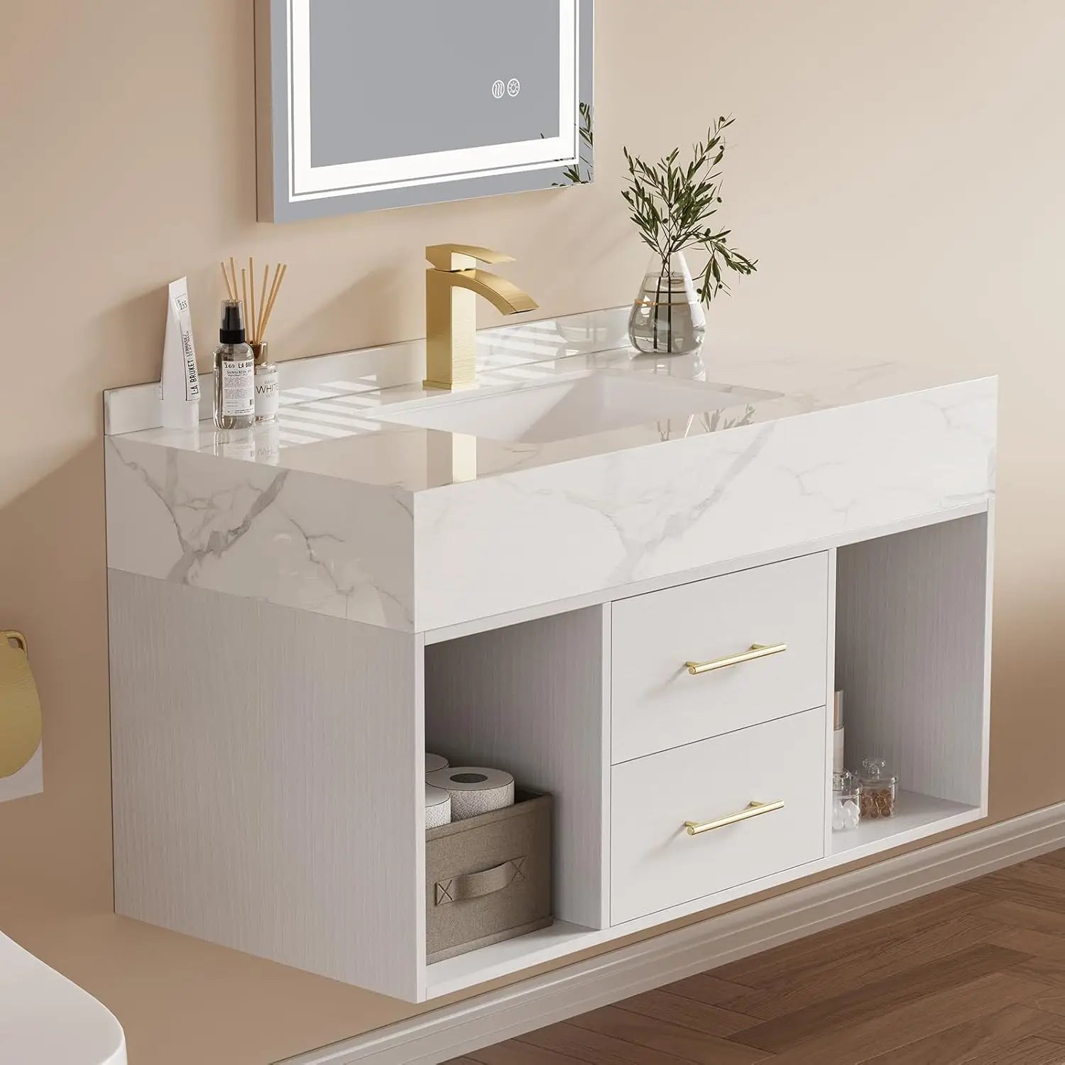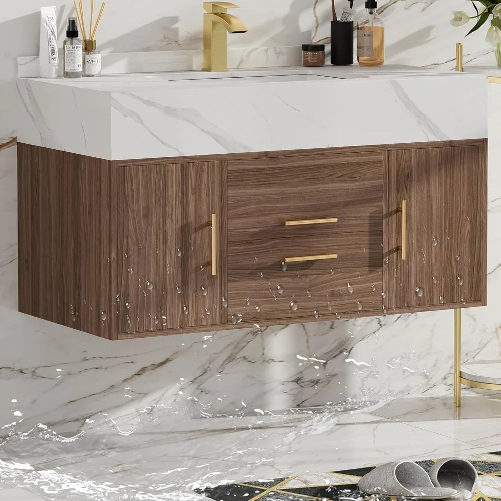 - Sleek Floating Design – bathroom vanity with sink using space-saving wall-mounted vanity creates a modern, airy look while freeing up floor space for easy cleaning