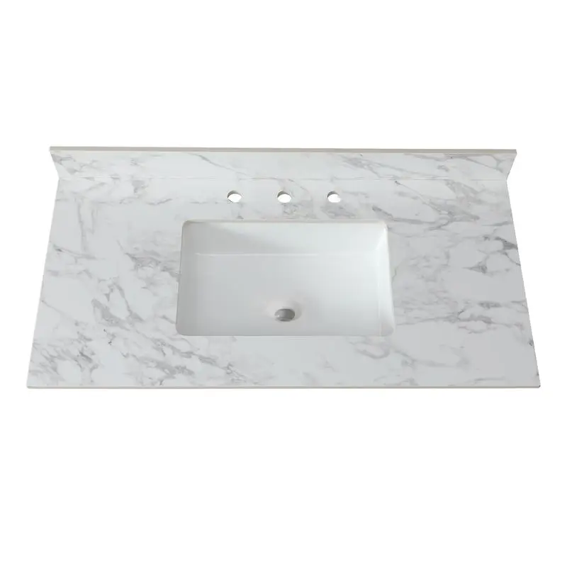 Comprehensive Packaging: Each engineered stone bathroom sink top comes with a 4" backsplash, ceramic sink, providing you with a more comprehensive installation solution. Besides, extremely solid firm carton box with foam is used to transport making sure a safe delivery . (Attention: sidesplash is not included but can be purchased separately if needed.)