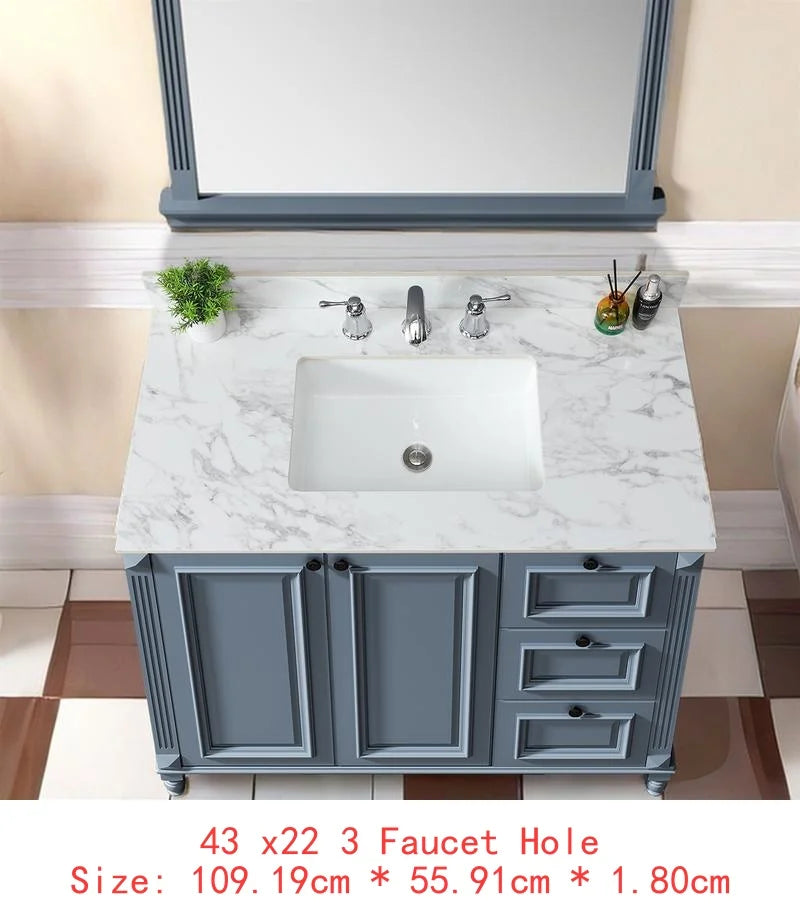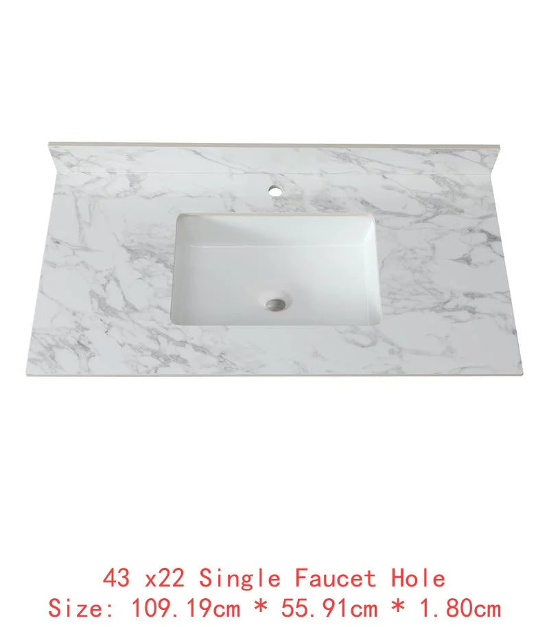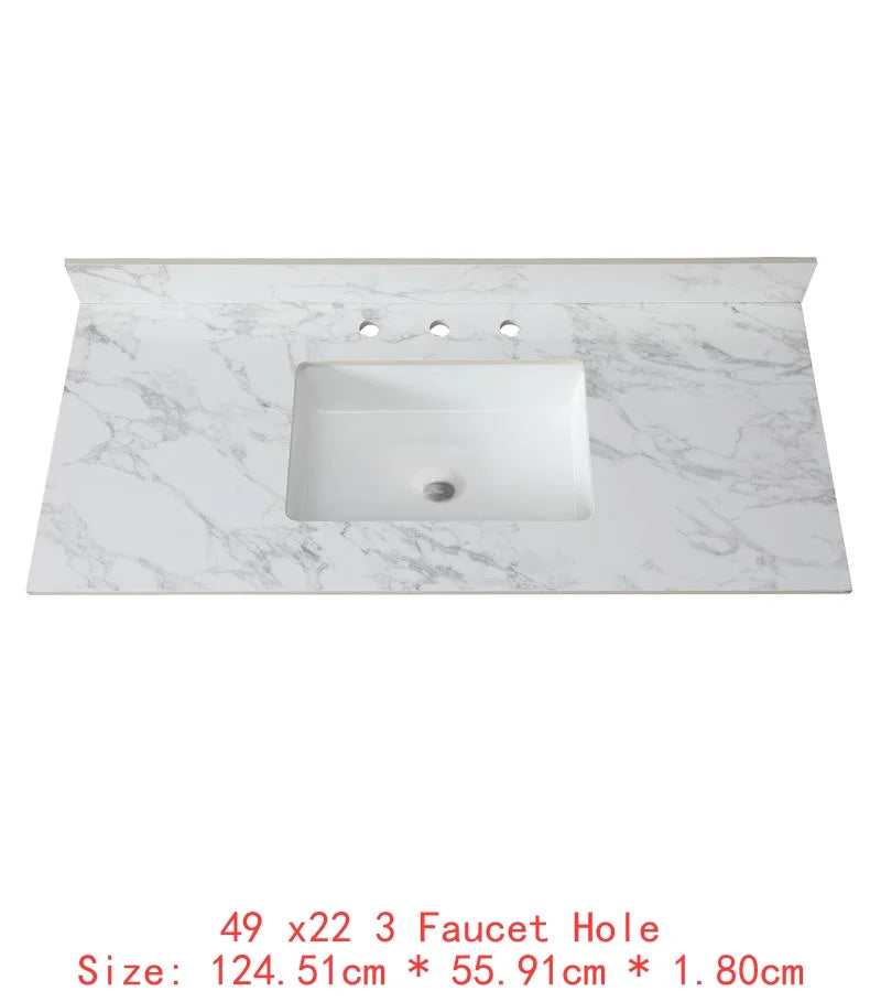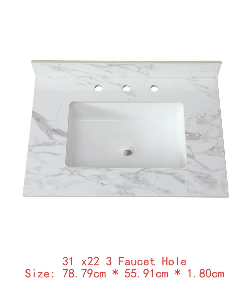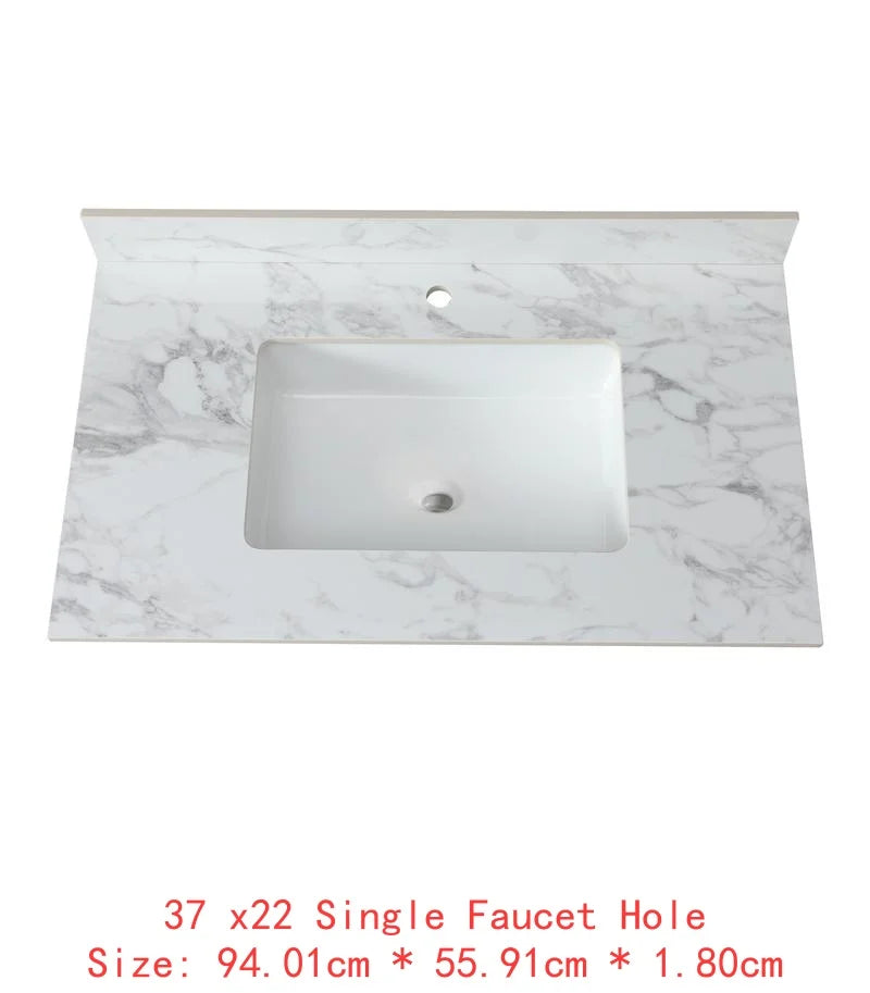 Durable Material: Crafted from high-quality engineered stone, our sink top boasts exceptional durability and stain resistance, standing up to long-term use. Whether it's water droplets, cosmetics, or cleaning agents, it can be easily cleaned to keep the countertop looking fresh.