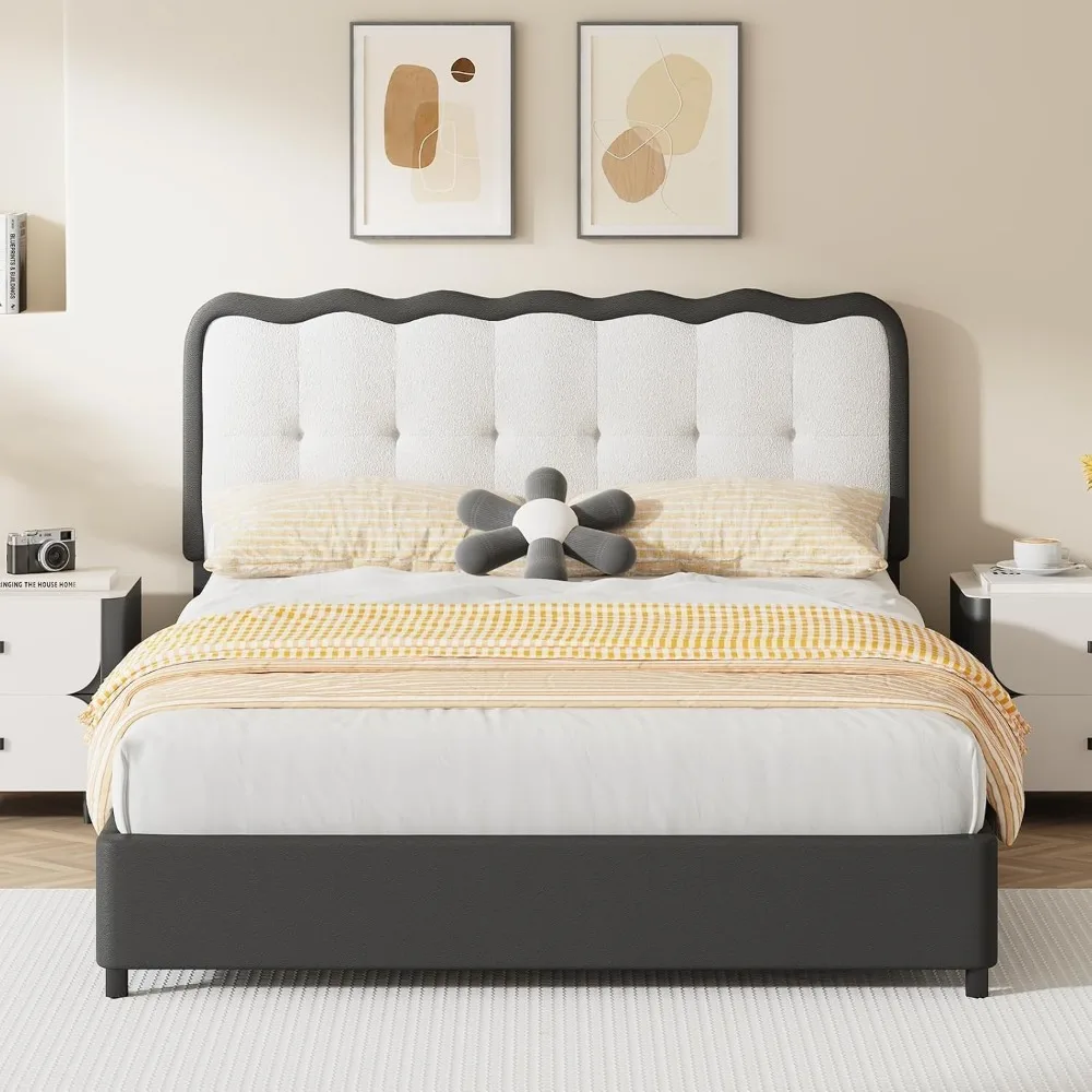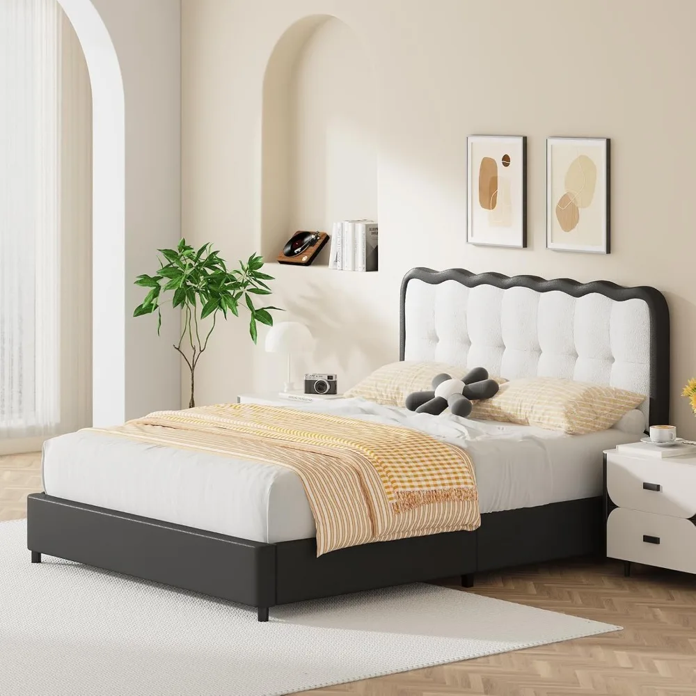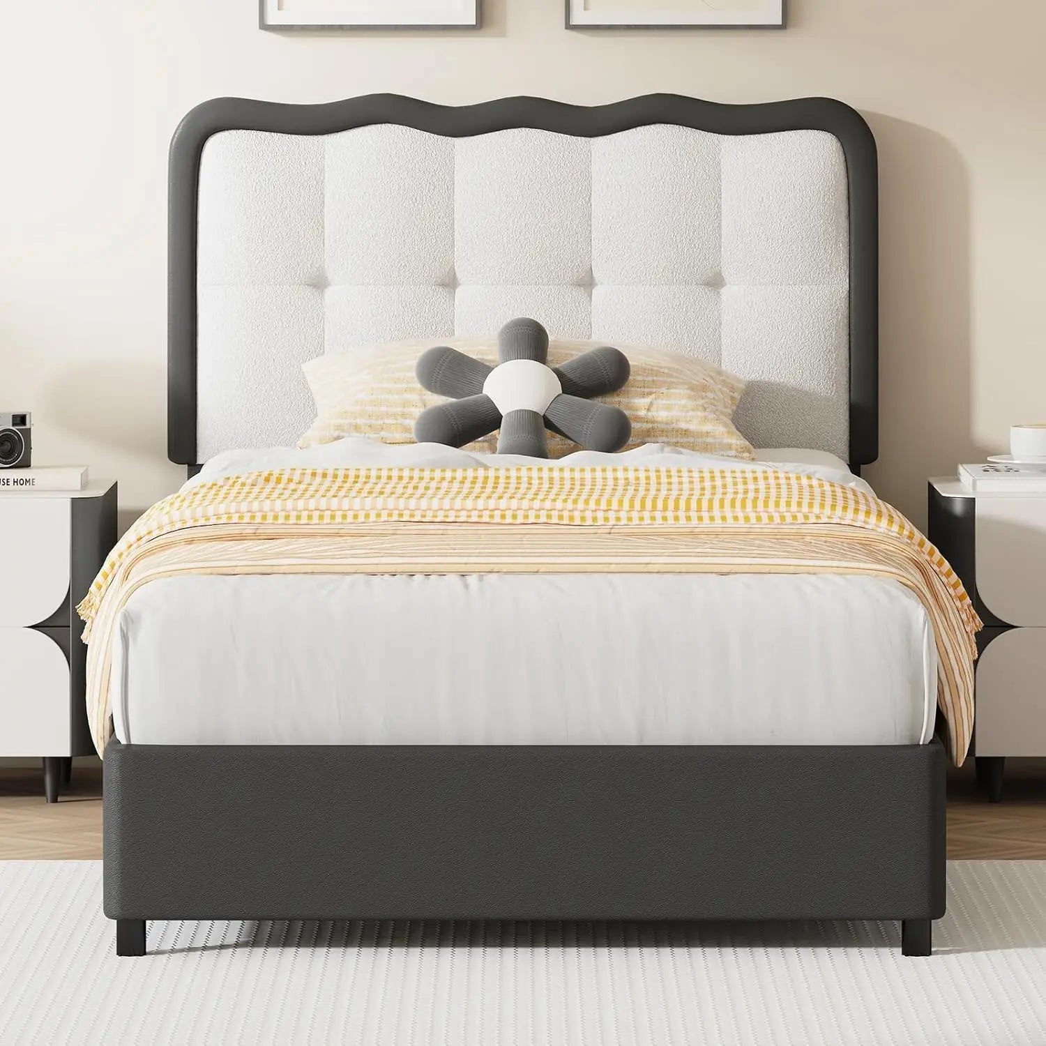 - Chic Two-Tone Bed: This twin bed frame white is eye-catching with its black and white mixed headboard, the collision of colors fully showcases its individuality, making both comfort and style coexist