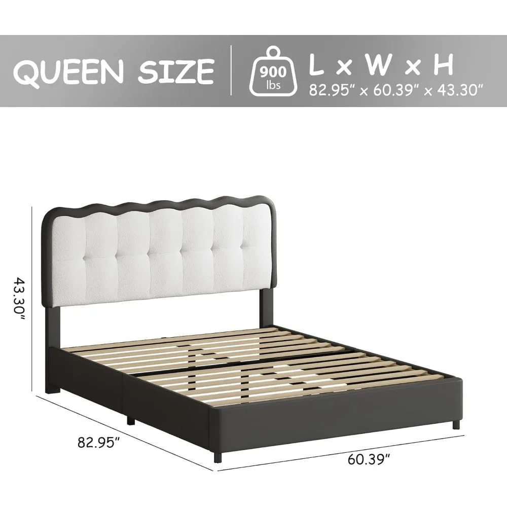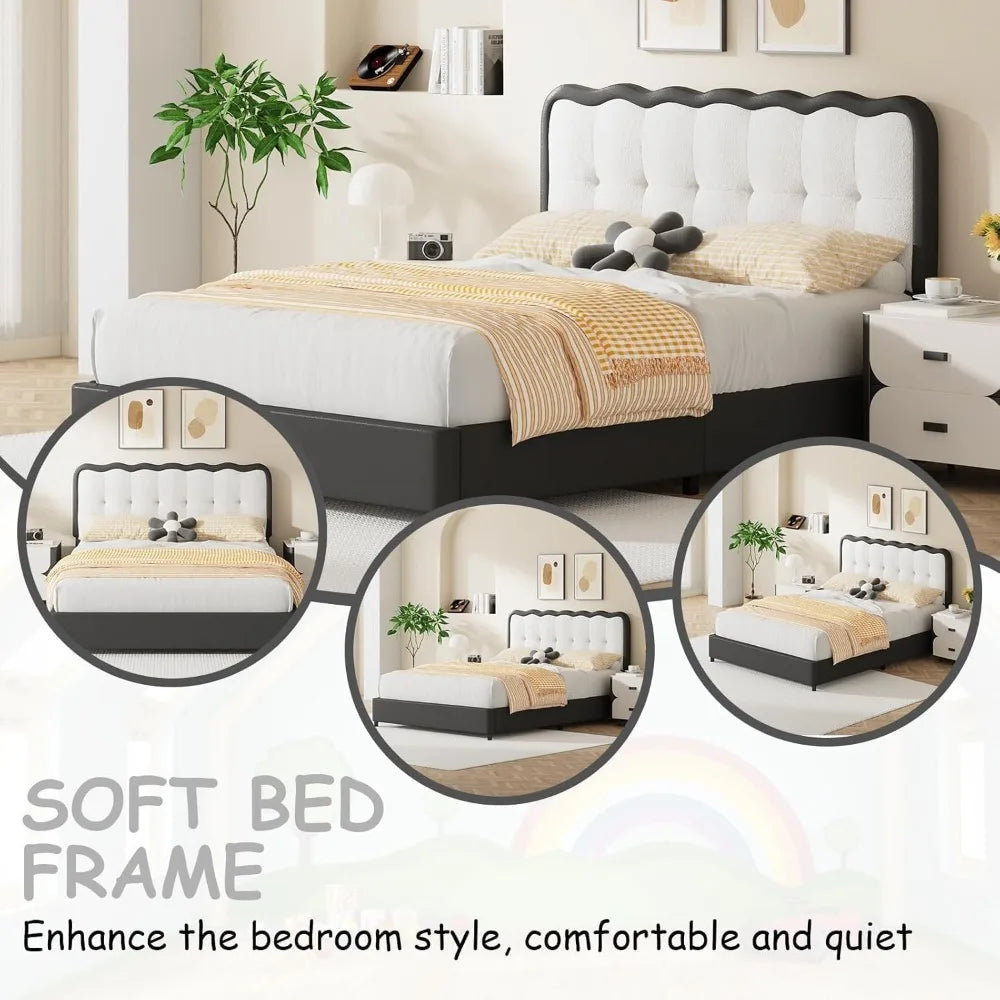 - Modern Comfortable Design: Twin upholstered bed frame shows a simple and modern design with the cloud headboard and black surface, the over all boucle wrapping enhances the sophistication of the bedroom, creating a warm atmosphere