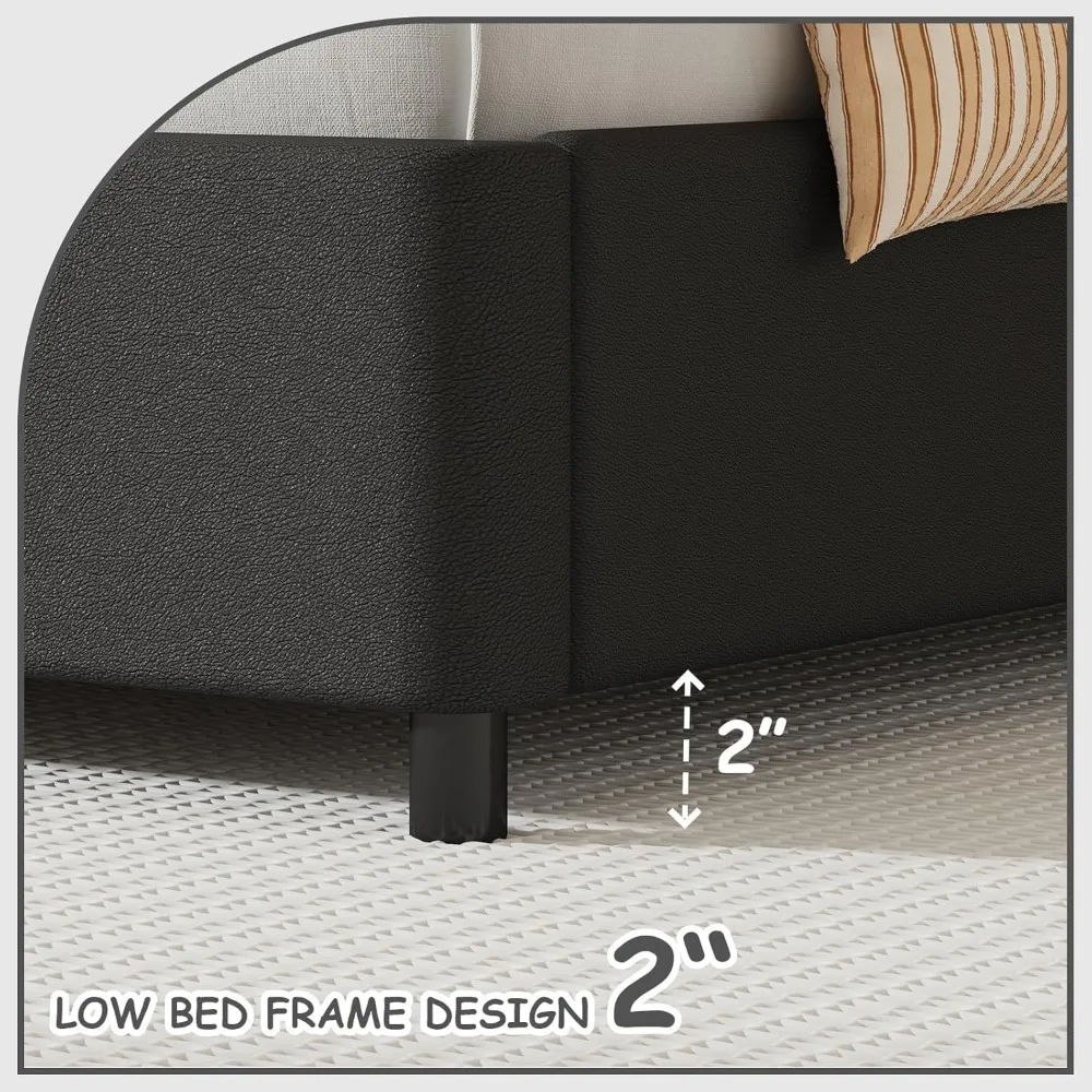 Bed Frame with Headboard, Upholstered Platform Bed with Rounded Corners, Soft Cloud Beds, No Box Spring Required