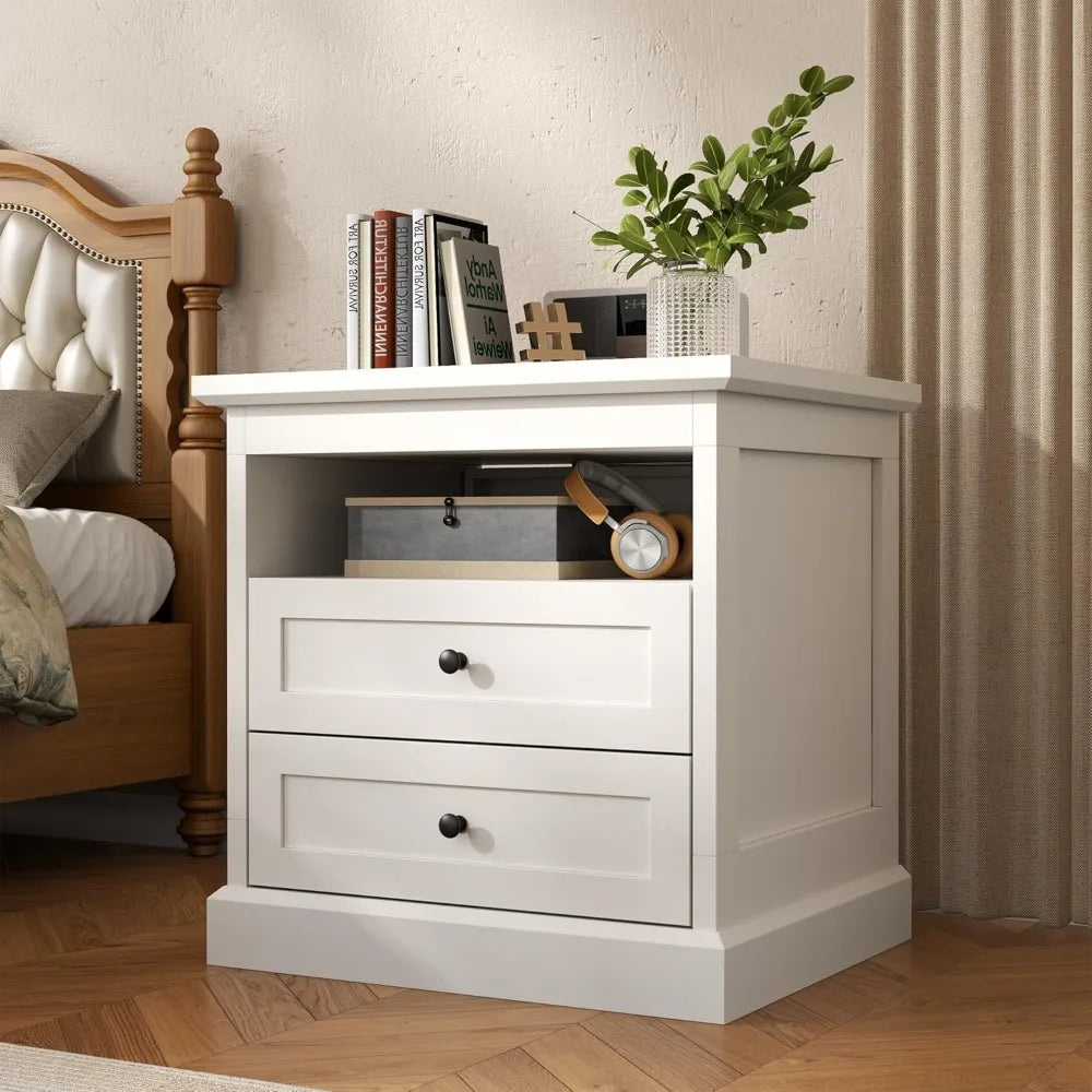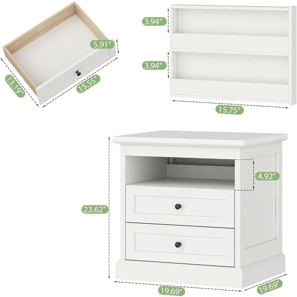 bedroom furniture: dual drawer nightstand with secret compartment and open shelf