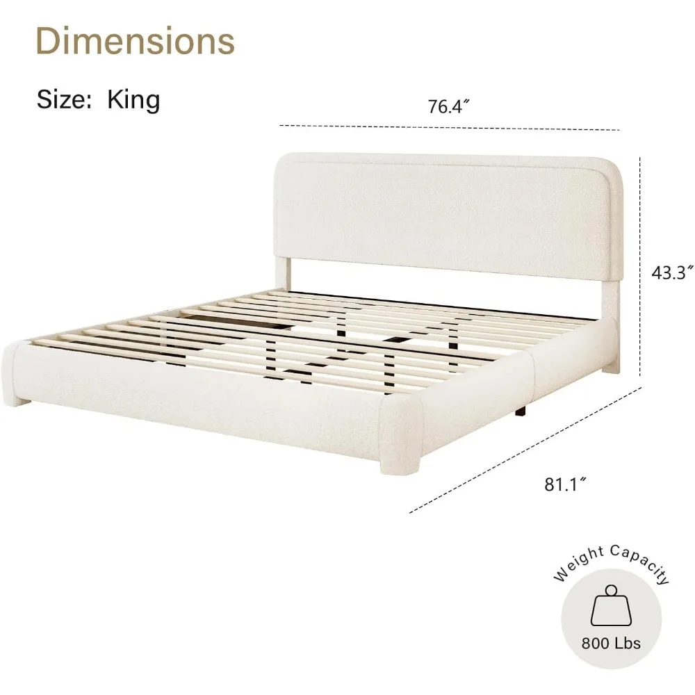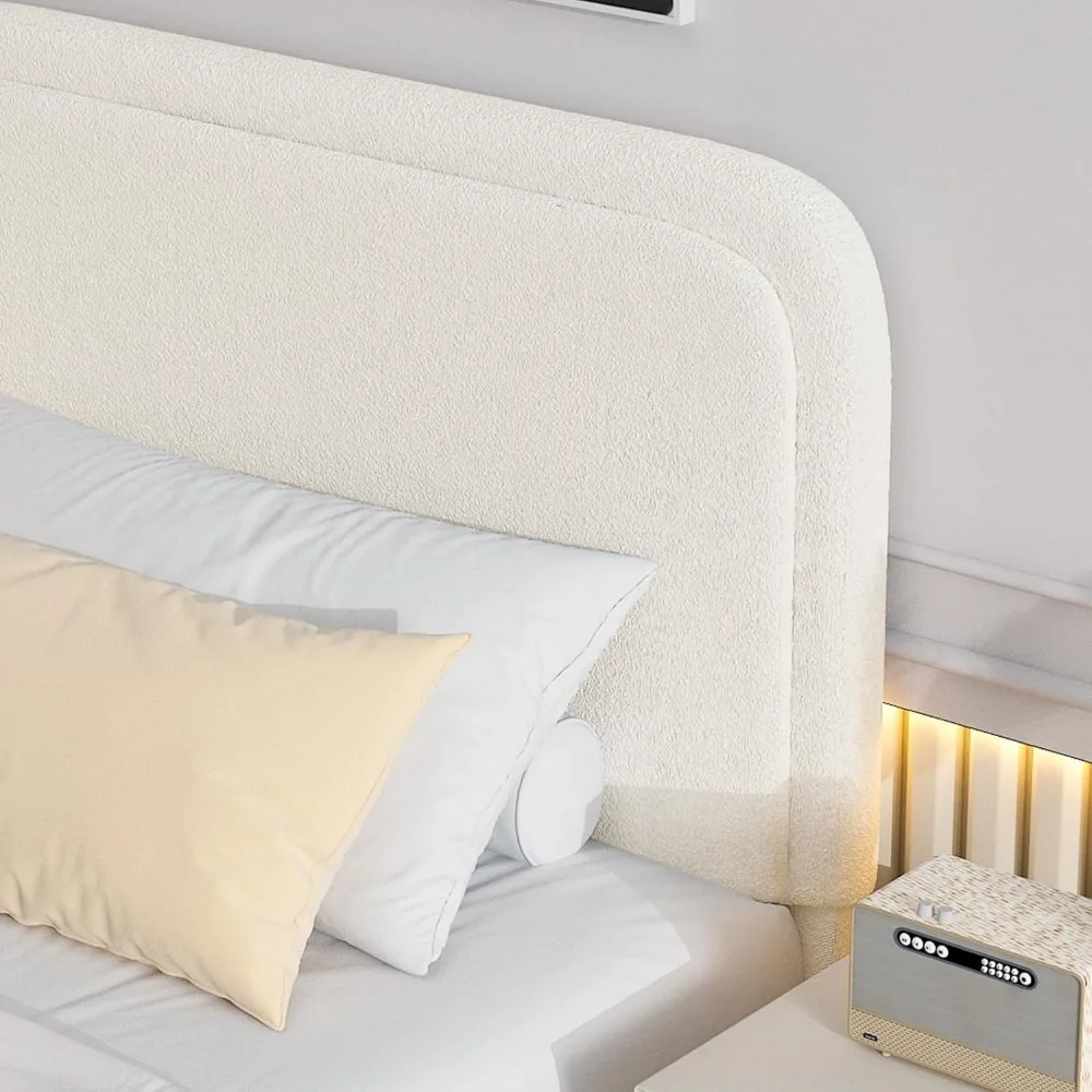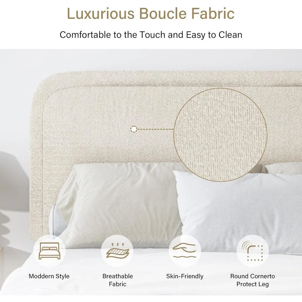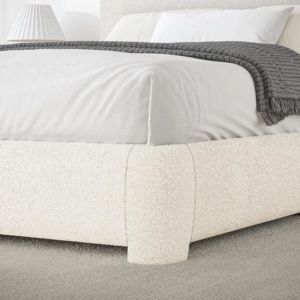 Boucle Upholstered Bed Frame with Soft Rounded Headboard | Modern Low-Profile Design, No Box Spring Needed