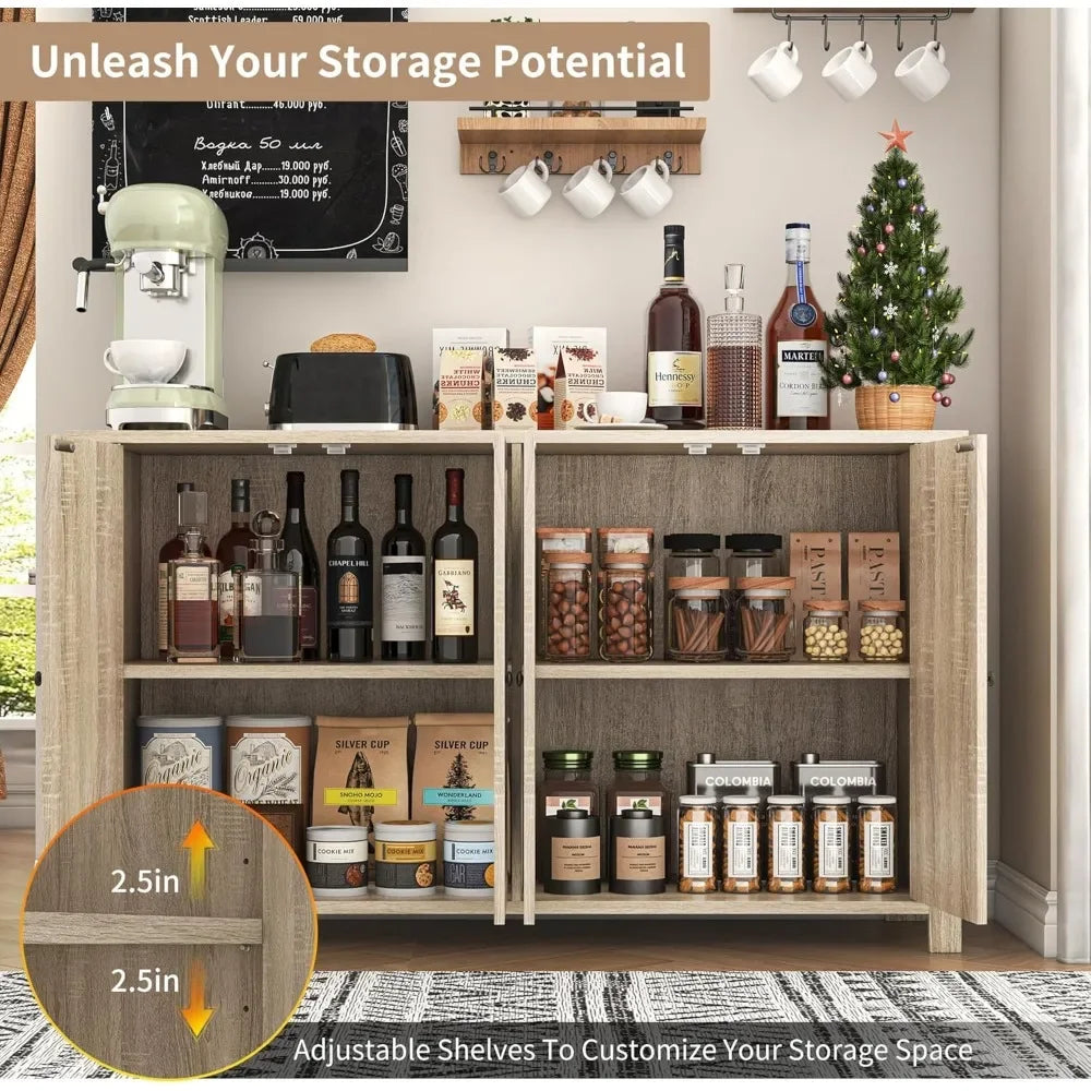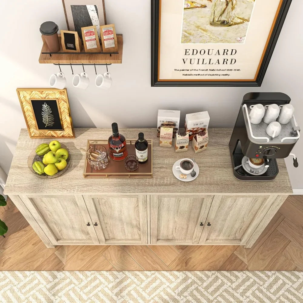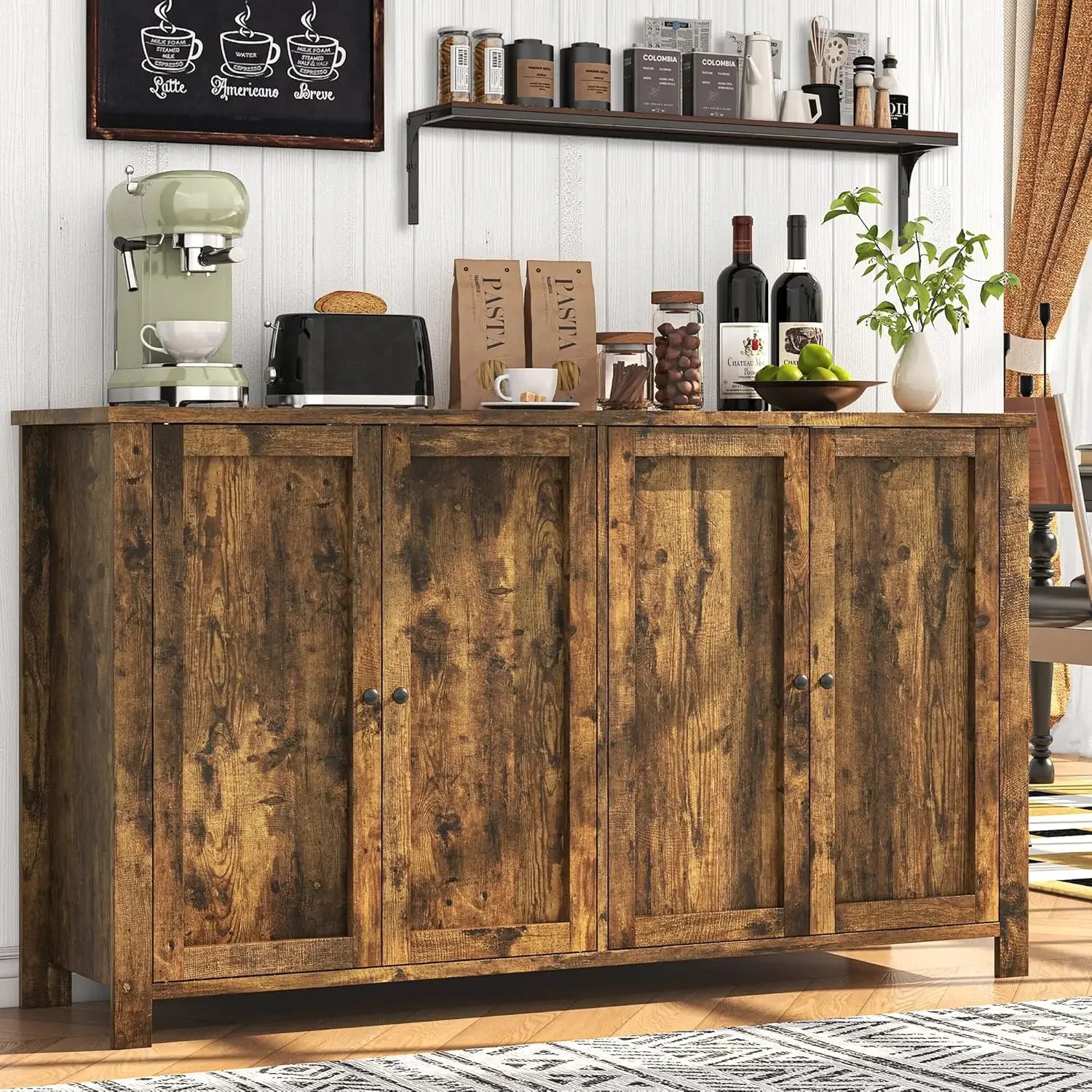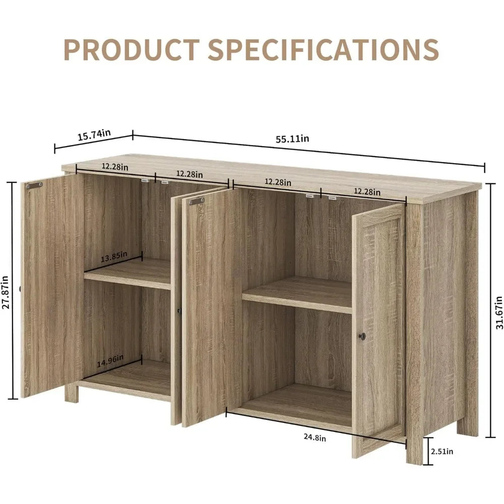 Buffet Cabinet with Storage Farmhouse Buffet Sideboard with 4 Doors, 55'' Large Kitchen Storage Cabinet Wood Coffee Bar Cabinet