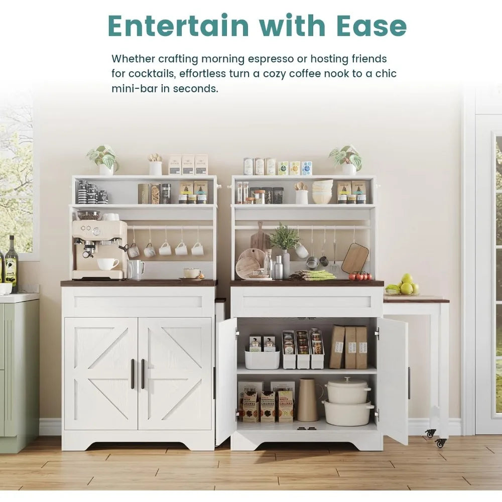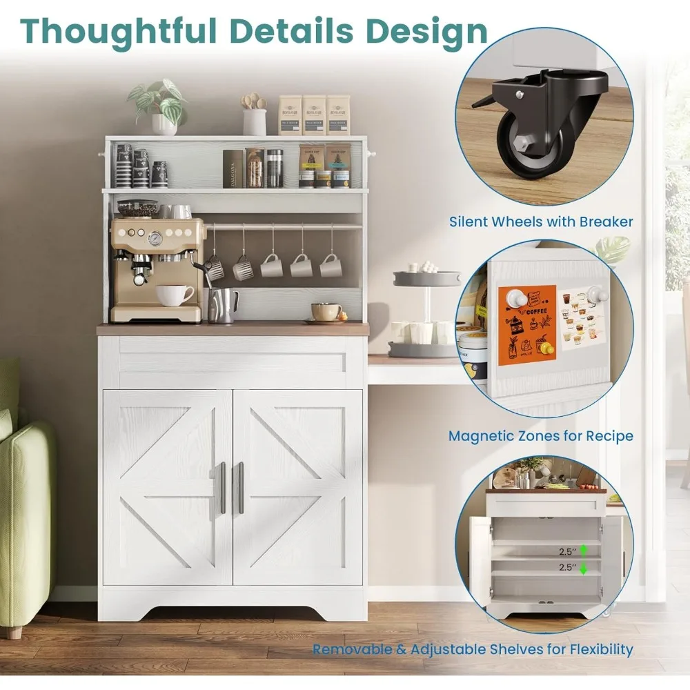 - Fits in Any Decor: The farmhouse coffee stand station features a clean white design that brings a touch of modern warmth to any decor style, whether it be Nordic, farmhouse, or urban chic. This multifunctional storage cabinet adds rustic elegance to your home, whether it’s modern or farmhouse style