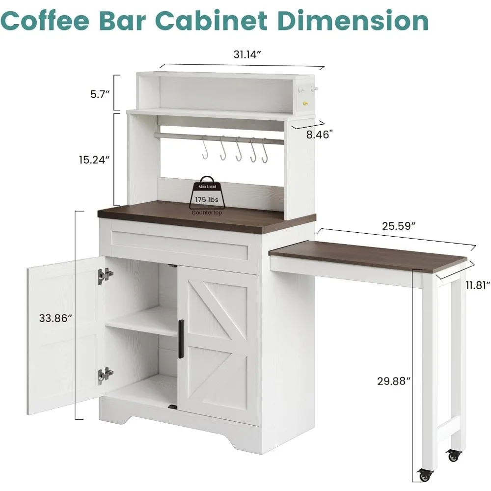 - Multi-Space Mastery: Effortlessly transitions from the delightful ritual of morning coffee preparation to the elegant experience of evening cocktail hosting—perfectly designed for kitchens, dining areas. The white coffee bar can perform as both a buffet sideboard and a wine beverage cabinet