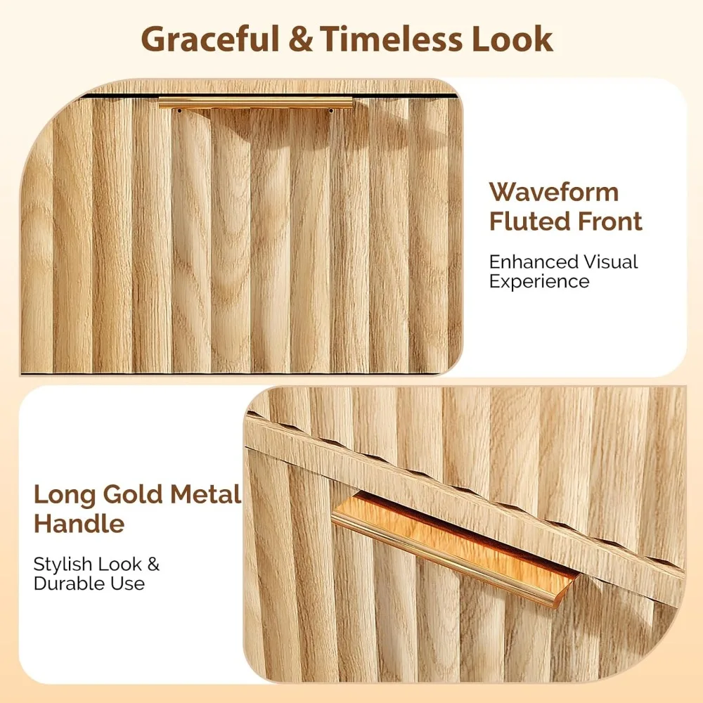 Fluted Wardrobe Closet Armoire with Doors And Drawers, Wardrobe Cabinet with Hanging Rack, Bedroom Closet Wood, Oak Free