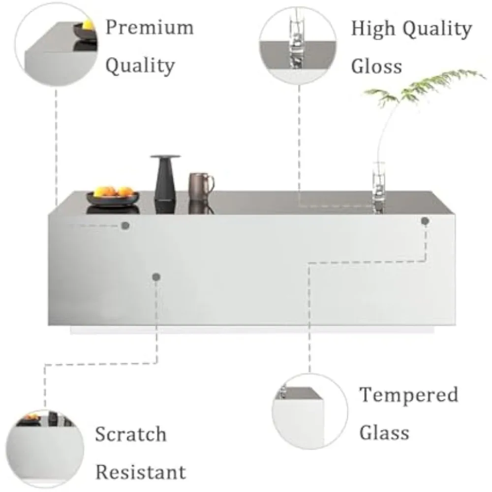 - 【Tempered Glass Mirror Top】This elegant mirrored coffee table features a high-quality, fingerprint-resistant tempered glass mirror. The 47.2-inch wide surface makes it ideal for working from home, enjoying meals, doing crafts, or playing games, all while relaxing on your couch.