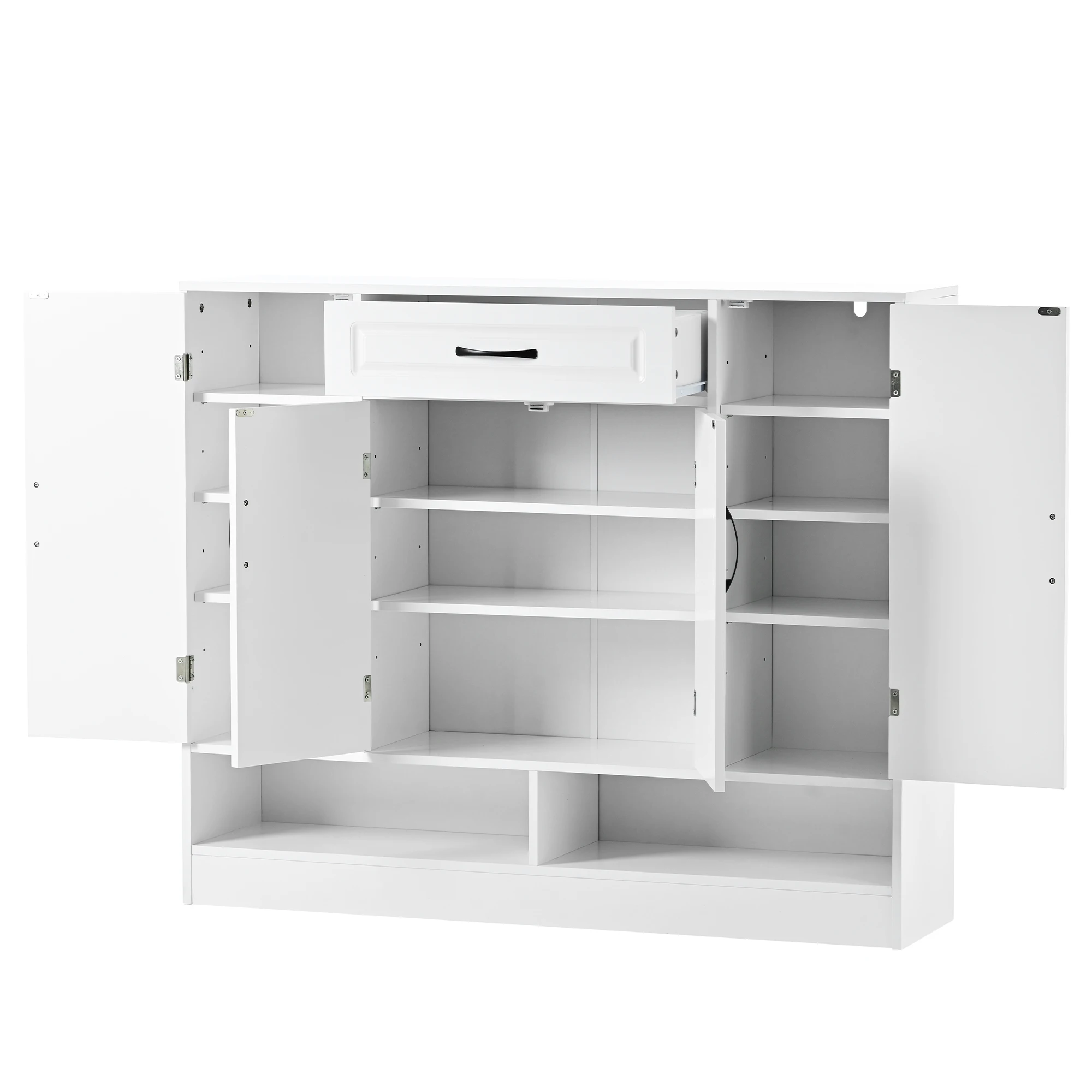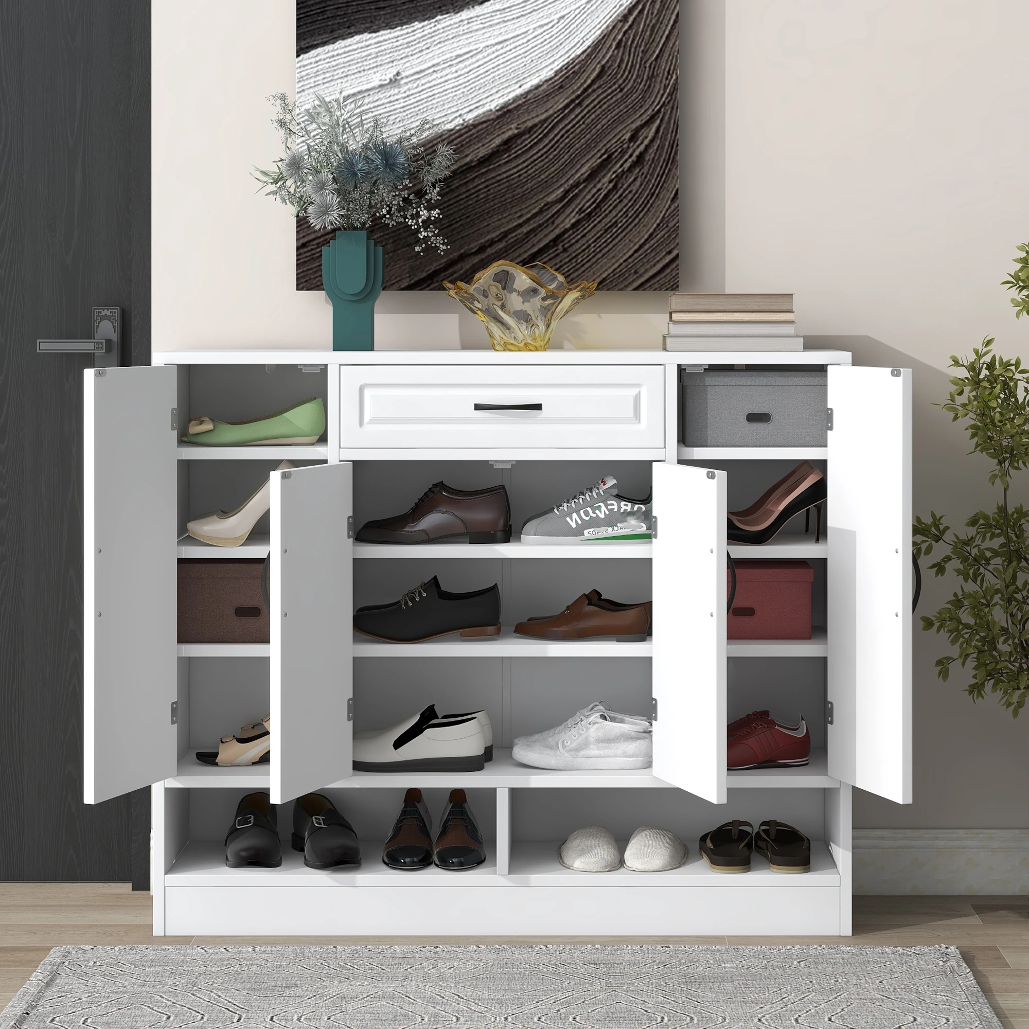 Modern 5-Tier Shoe Cabinet with Adjustable Shelves 4-Door 1 Drawer Sturdy Particle Board Construction Organizer Storage Rack
