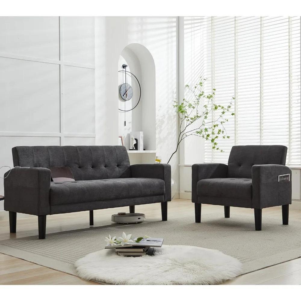 Sofa Couch, Living Room Furniture Sectional Sofa Sets 2 Pcs, Tufted Mid-Century Loveseat w/USB, Cupholders & Comfy Sing