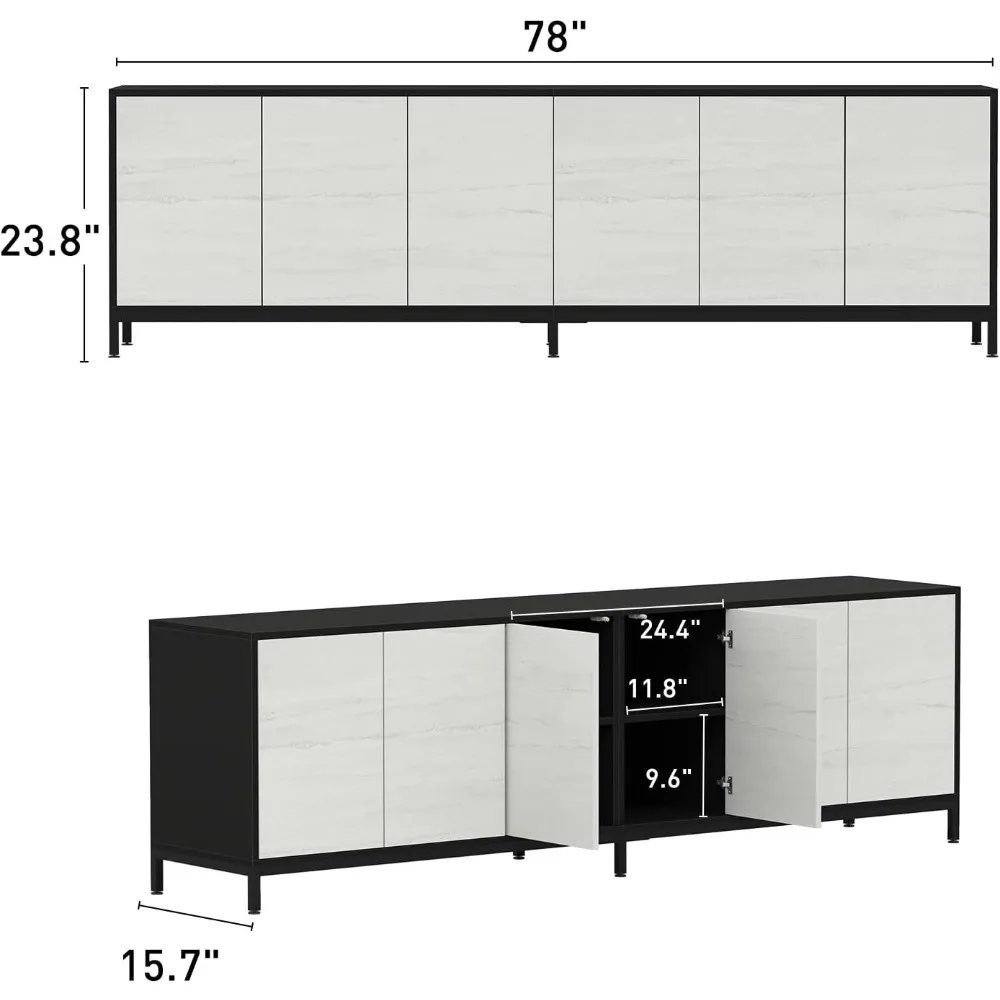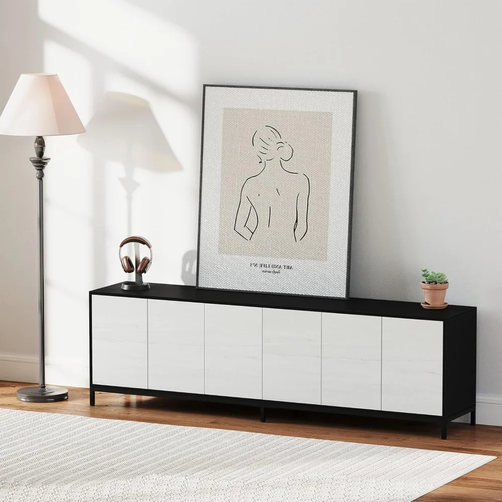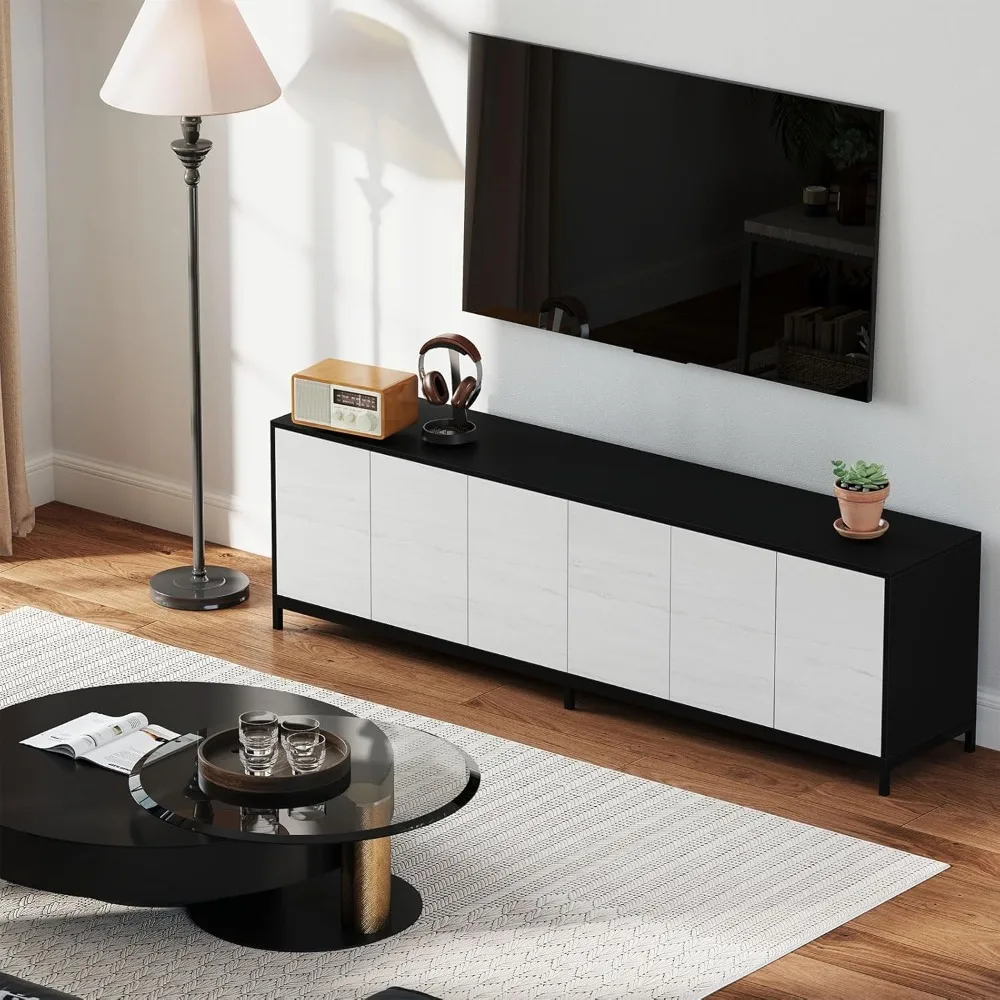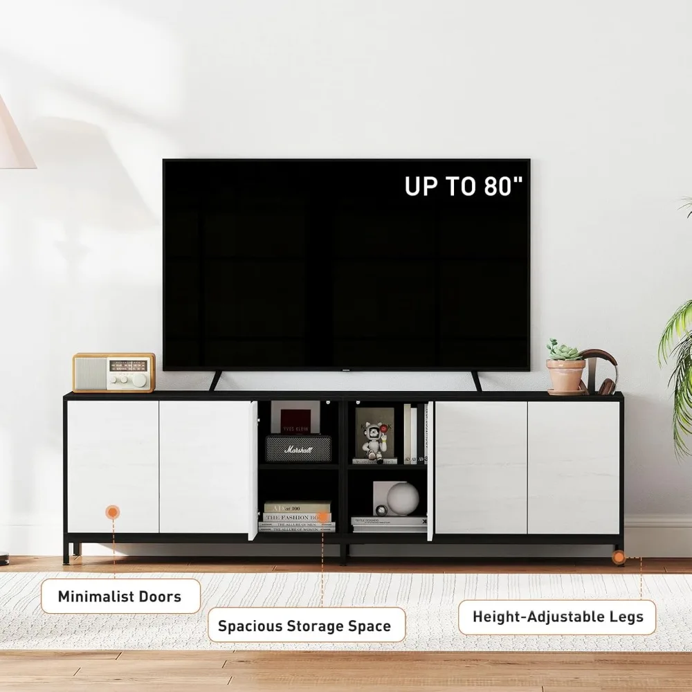 TV Stand for 80" 85" TV, Modern Entertainment Center with 6 Cabinet Doors Long Console Table for Living Room, Bedroom