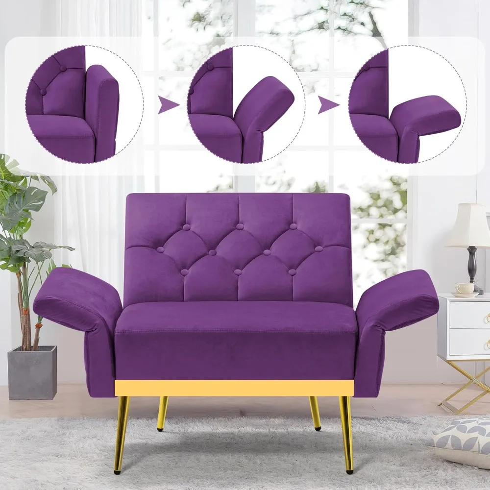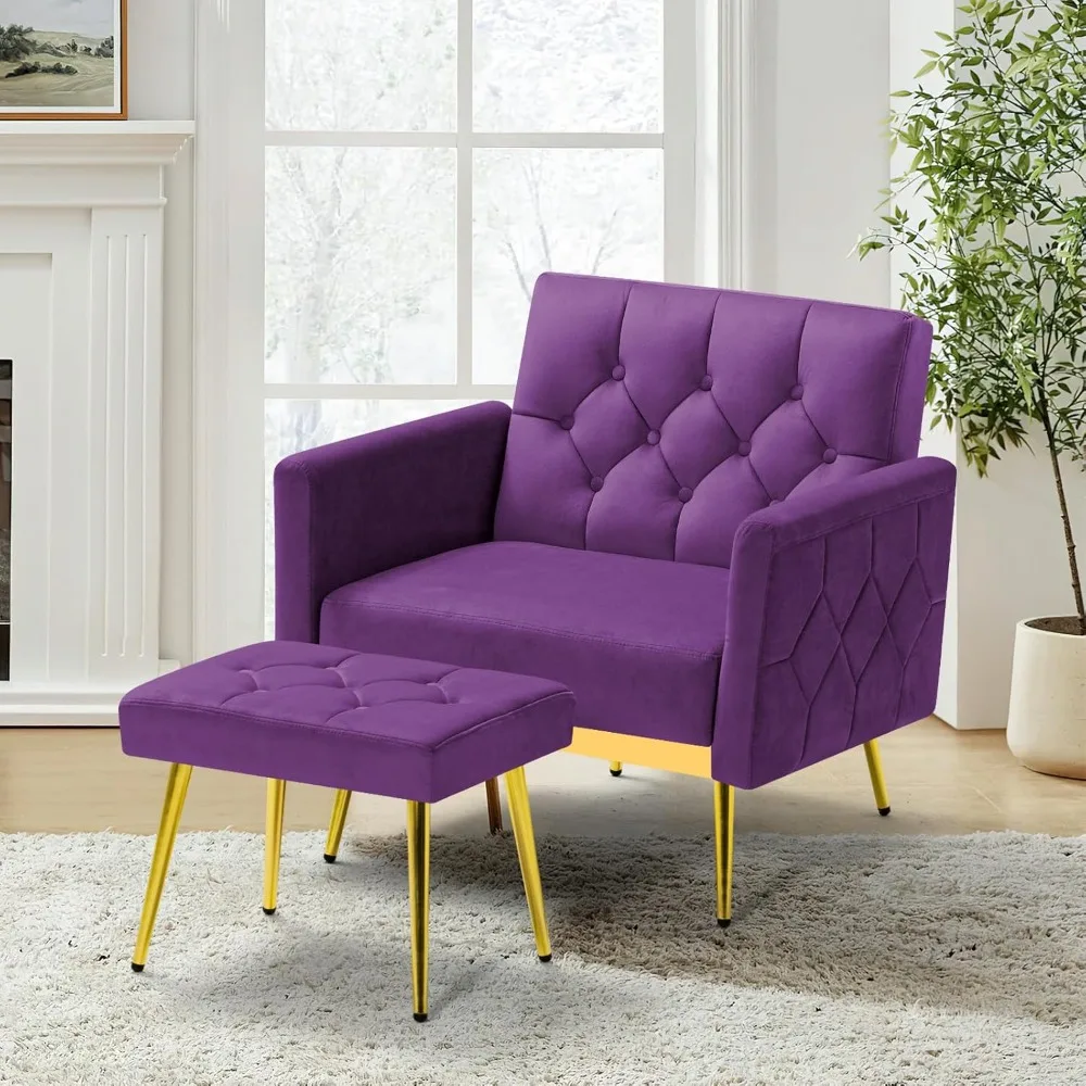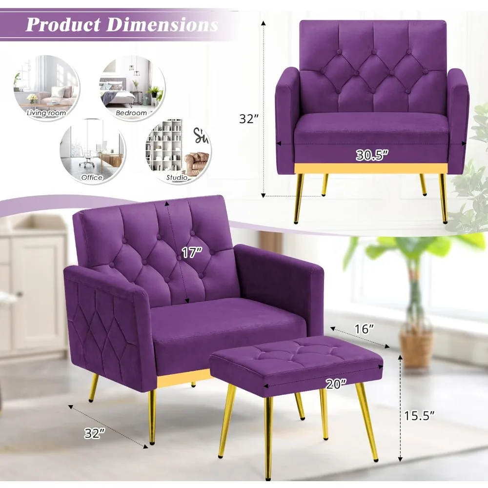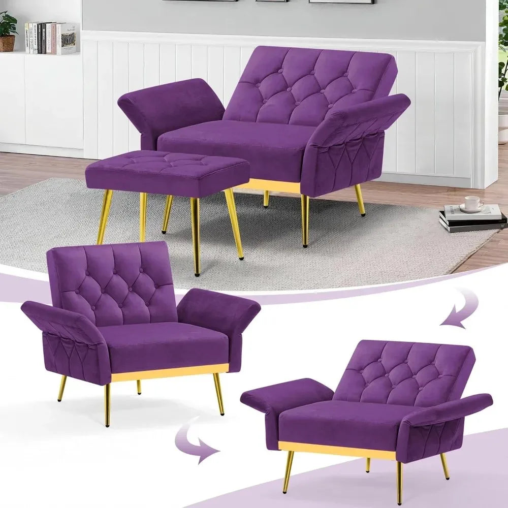 Velvet Accent Chair w/Adjustable Armrests and Backrests, Tufted Single Sofa with Ottoman, Upholstered Reading Chiar for Living R
