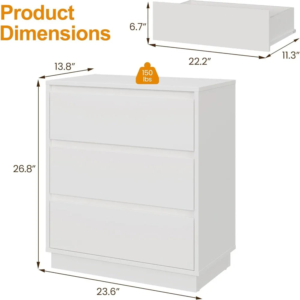 - Extra-large Nightstand: Cabinet dimensions: 23.62"W x 13.78"D x 26.78"H. Drawer dimensions: 20.47"W x 11.26"D x 3.82"H. The three drawers provide ample storage space to help you organize and store your items. The waterproof, spacious tabletop is convenient for placing items or decorating.