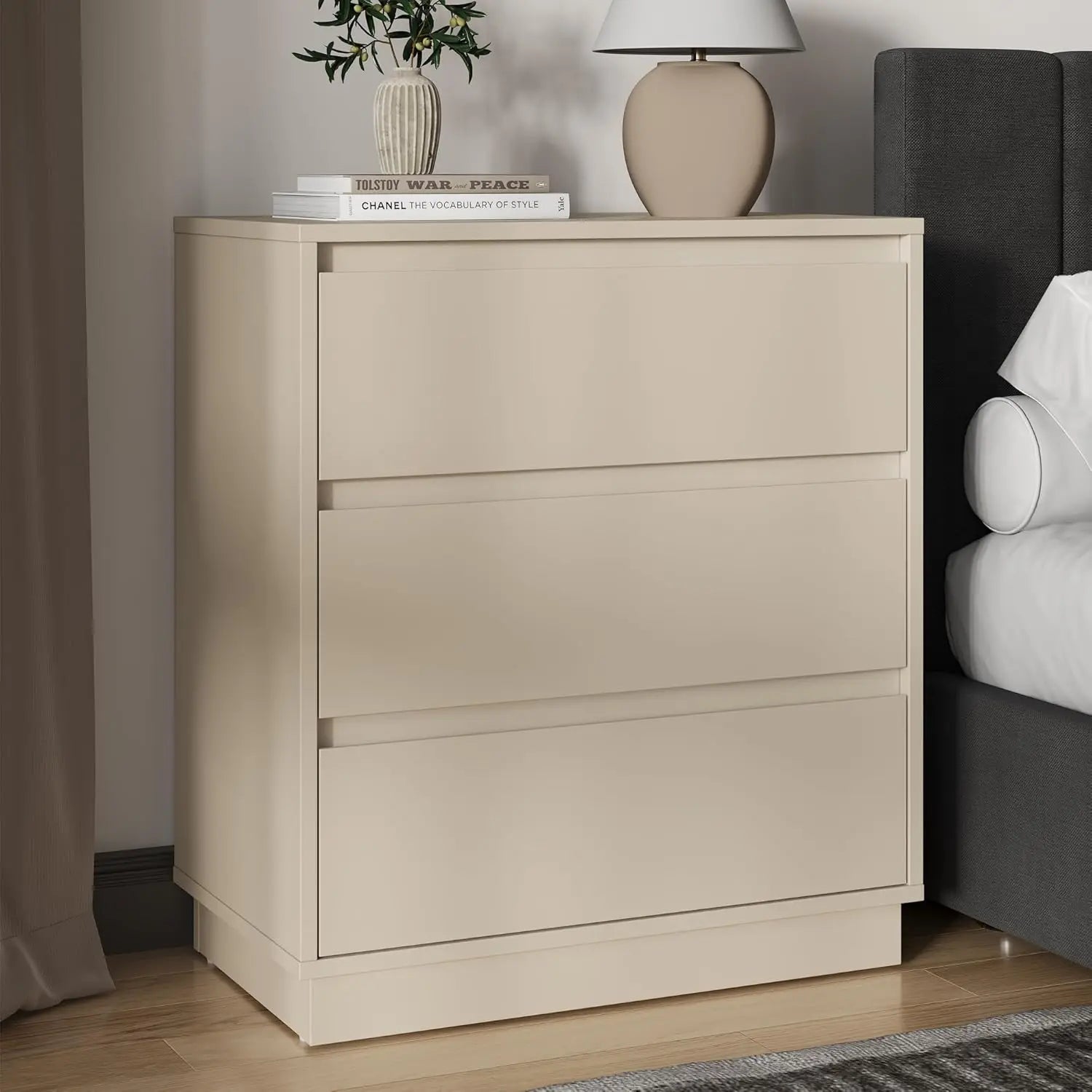 - Timeless Elegance: Bathed in a soothing beige tone, this nightstand exudes quiet elegance through its seamless, minimalist form. The soft matte finish enhances its warm presence, while the handle-free design and concealed sliding system maintain a sleek, uninterrupted silhouette—simple, serene, and refined.